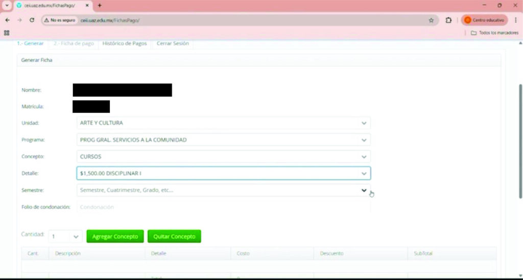 Ingeresar a el sitio Ficha de pago UAZ